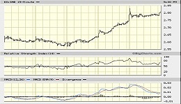 SABADELL – 5 DÍAS – Arrancó la semana en la cota de 2,60€ para caer el miércoles a 2,57€ y posteriormente coger impulso hasta la zona de 2,83€ debe superar un primer obstáculo en 3,00€, para probarse con la fuerte resistencia situada en 3,25€, al cierre del viernes, su cotización es de 2,807€. Vigilar que los incrementos de volumen sean constantes.