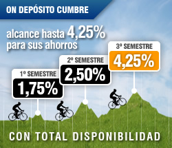 El nuevo producto de Caixa Galicia es On Depósito Cumbre y se contrata exclusivamente por Internet. Se trata de un depósito que nos ofrecerá una remuneración creciente que puede llegar hasta un 4,25%.