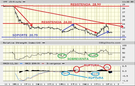 Veamos el gráfico de estos últimos 10 días de YPF S.A. ADS (NYSE) en USA: